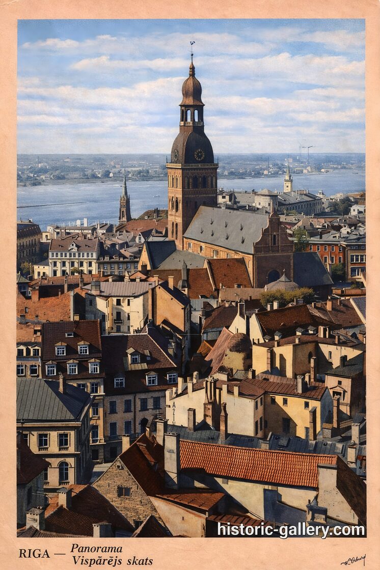 Рига в 1930-тых годах. Цветная версия старинной открытки. -