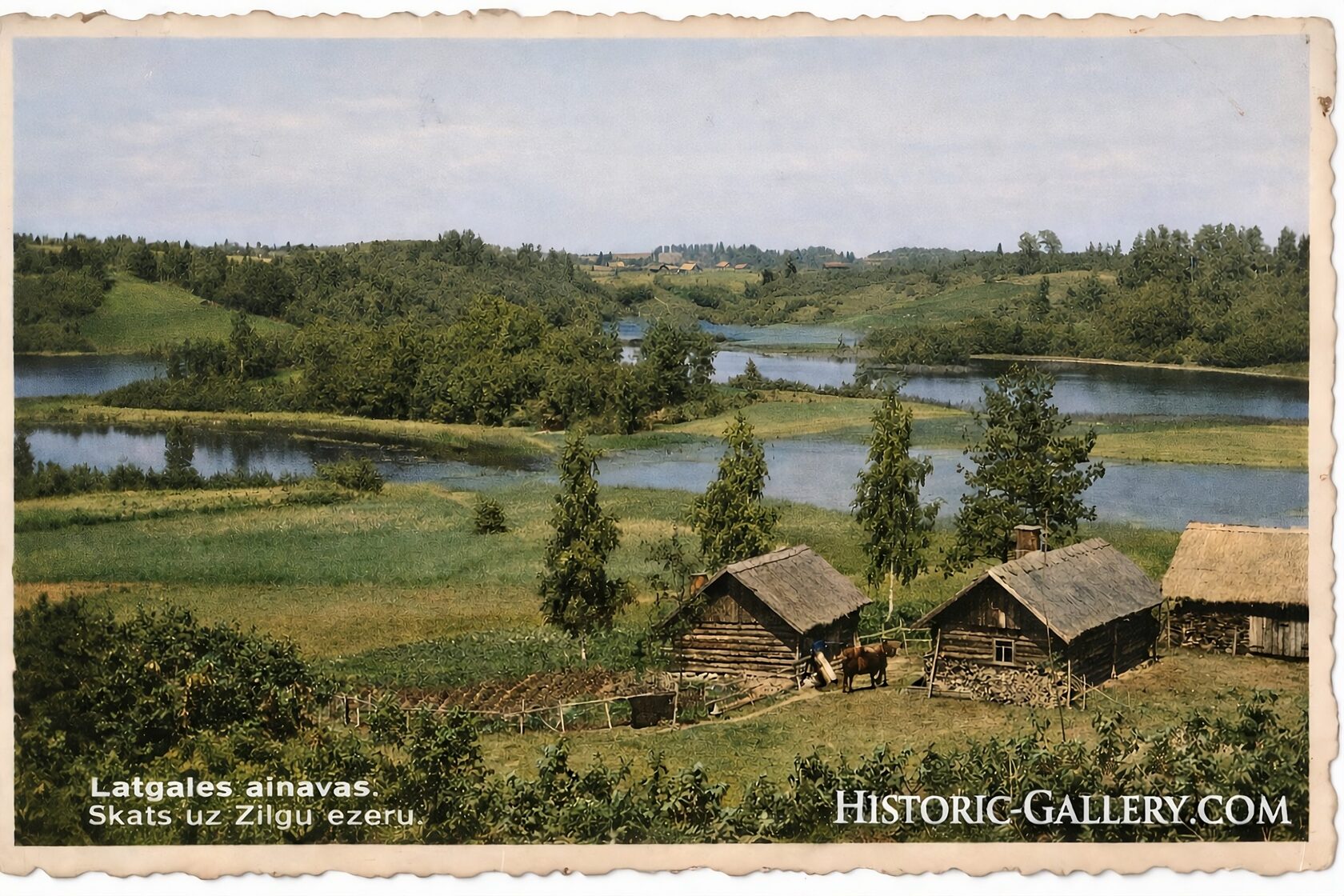 Латгальский пейзаж. Цветная версия фотооткрытки 1930-тых годов. -