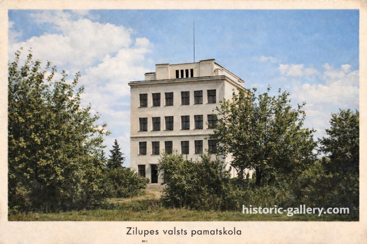 Зилупе. Почтовая кантора. 1930-тые года. Цветная версия старинного фото.