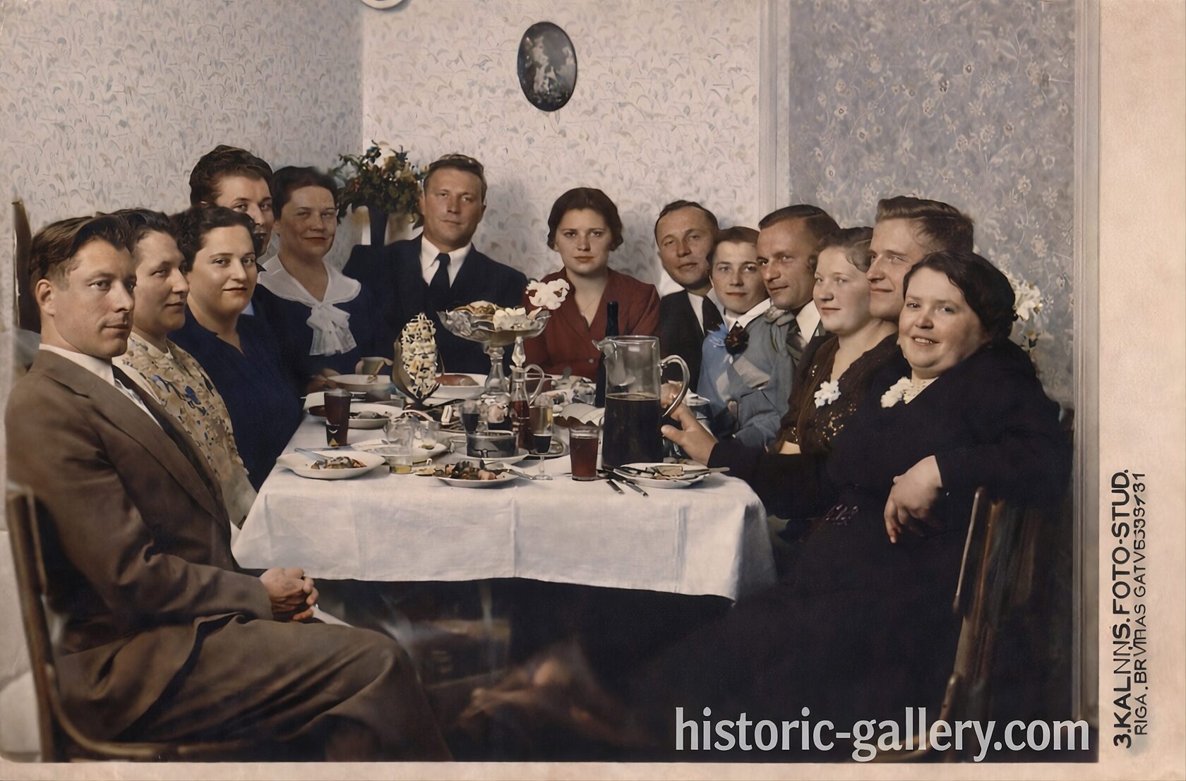 Рига. 1937 год. Дубровские принимают гостей. Цветная версия старинной фотографии. -