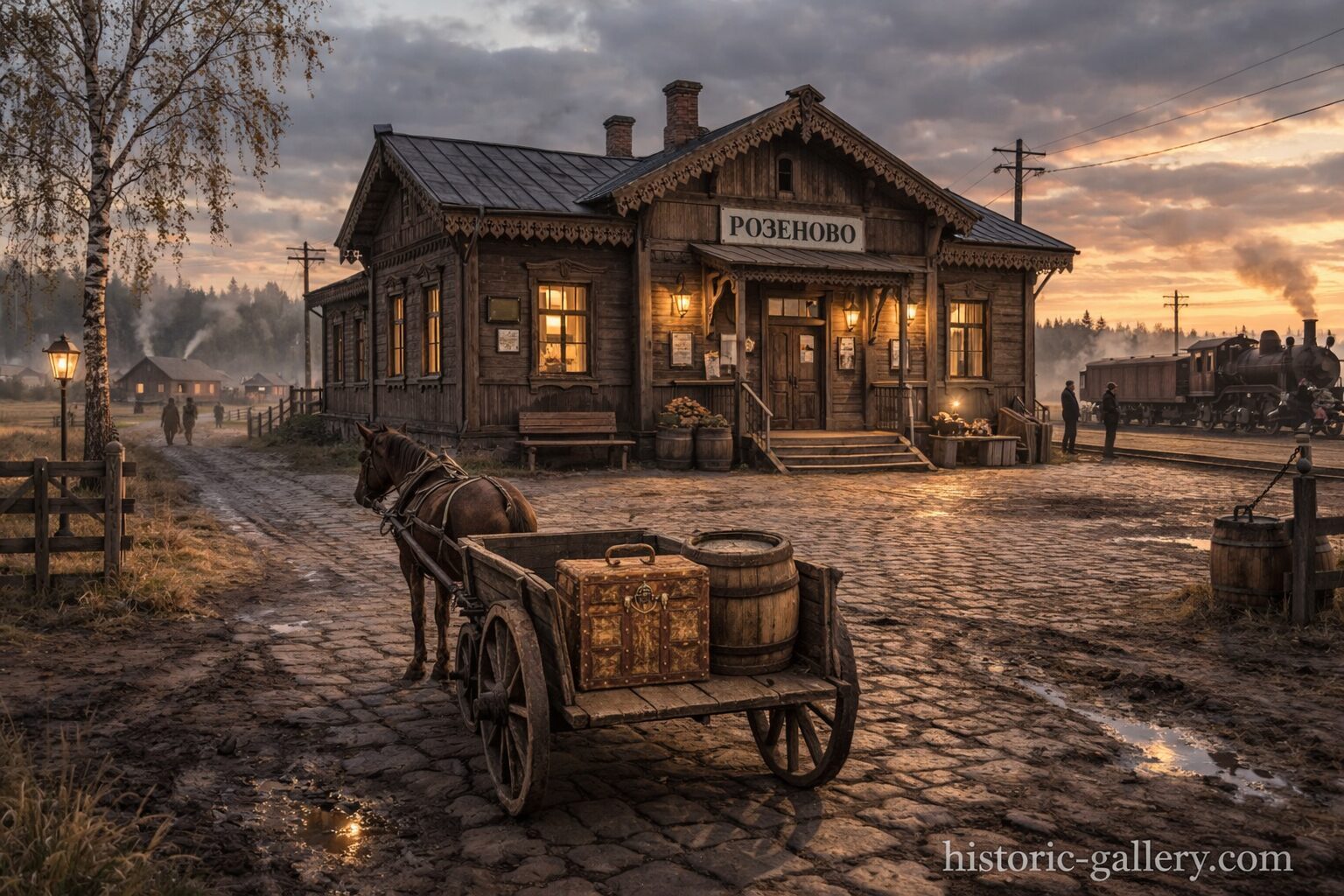 Вокзал на станции Розеново. 1900 год. Реконструкция с помощью ИИ. -