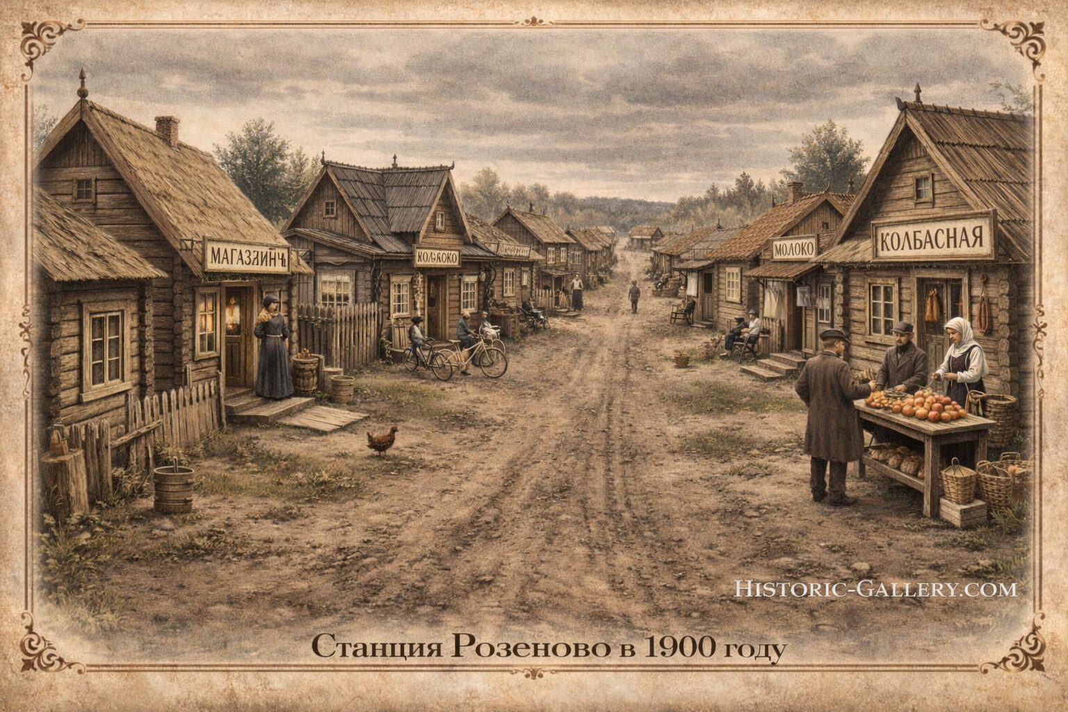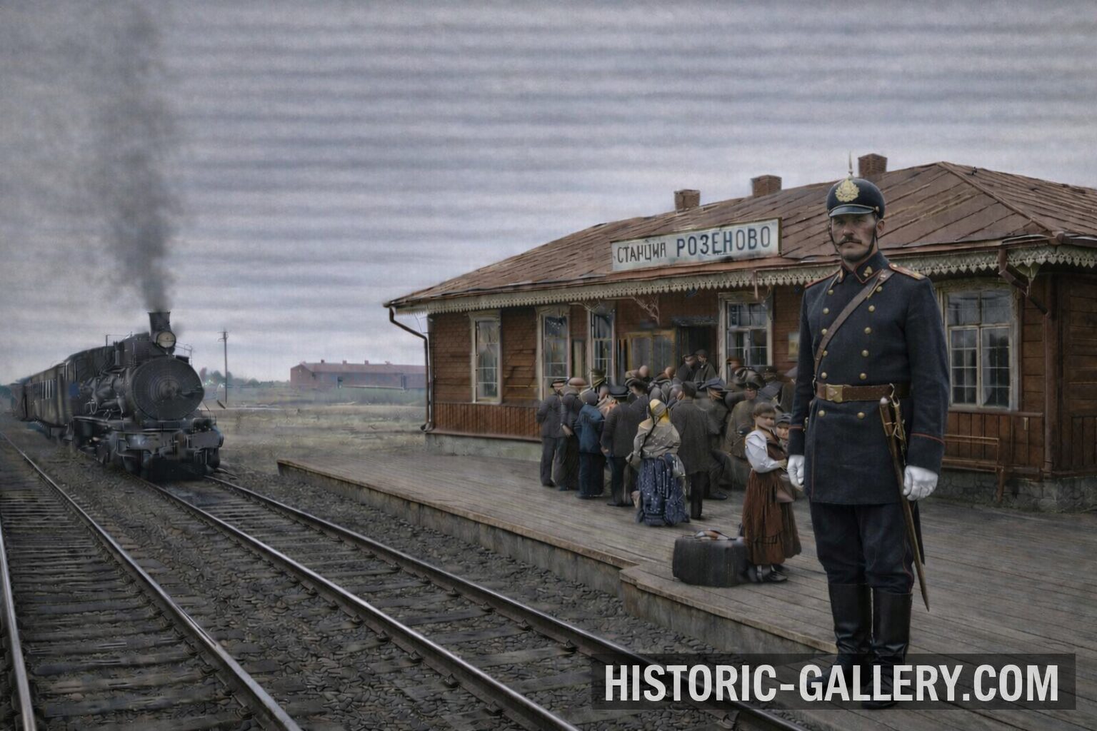 Stacija Rozenova (Zilupe). 1900. gads. Rekonstruēta ar MI palīdzību. -